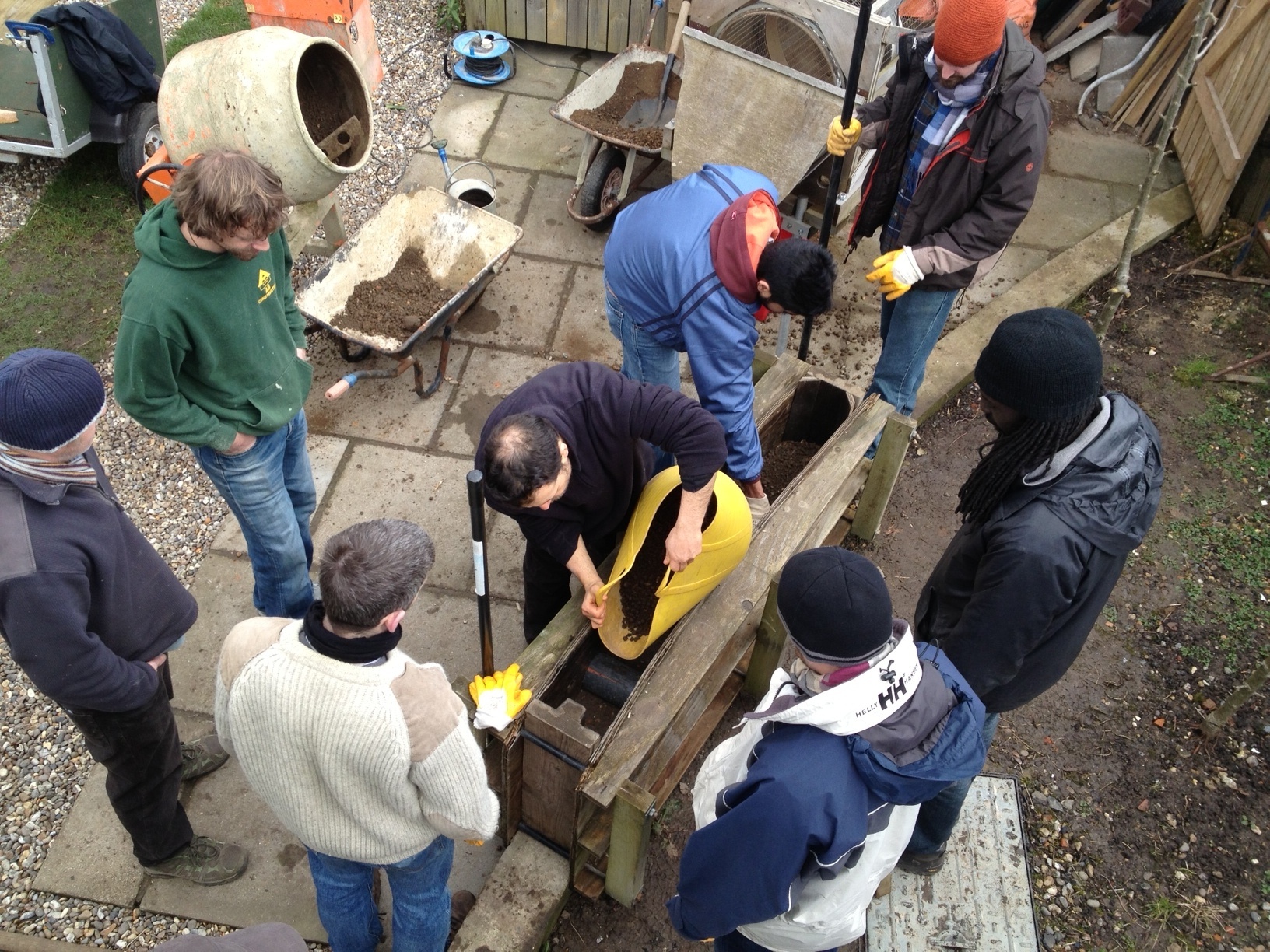 Last week me (Ásgeir), David and Shea went to a course in rammed earth building in Norfolk, England. This course is conducted by Michael Thompson, see info on http://www.rammed-earth.org. This gave us further insight into the rammed earth technique and valuable first hand experience. It was also interesting to meet others who share interest in this method for different reasons. It can be about cost, aesthetics, health or availability of material and expertise in different cultural contexts. We used our in between time to sketch molds, plan the coming months and being tourists in Norfolk.