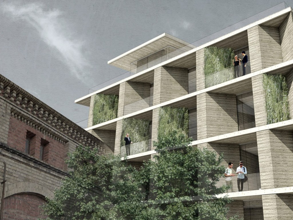 Examensarbete på Chalmers tekniska högskola. Design av kontorslokaler med jord som byggmaterial i kvarteret Lyckholms, i centrala Göteborg.